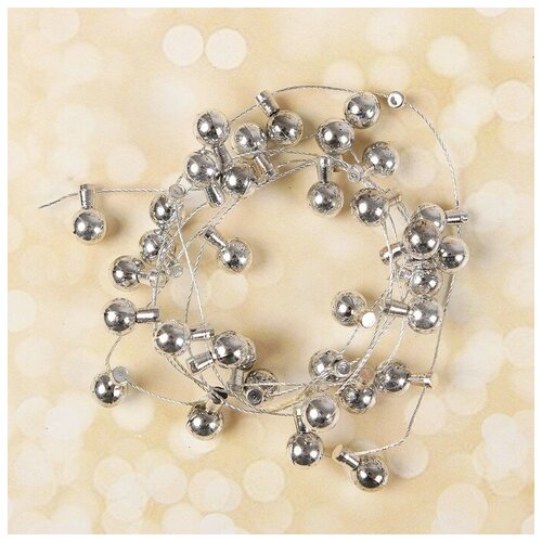 Миниатюра кукольная "Гирлянда - шарик" длина 1 метр, игрушка 1,5*0,8 см, цвет серебряный 3142027
