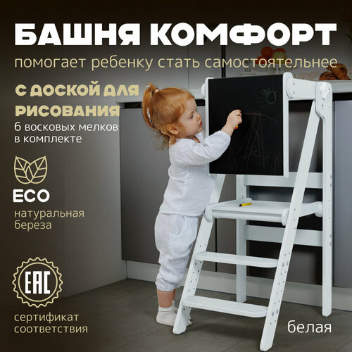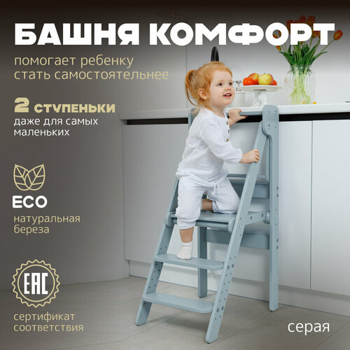 Цены на Башня помощника Монтессори "Комфорт" серо -белая + доска для рисования мелом/ ограничитель PAPPADO стульчик для кормления белый, серый в г. Волгоград