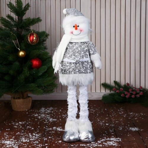 Мягкая игрушка "Снеговик в колпаке и шарфике, длинные ножки" стоит, 9692549