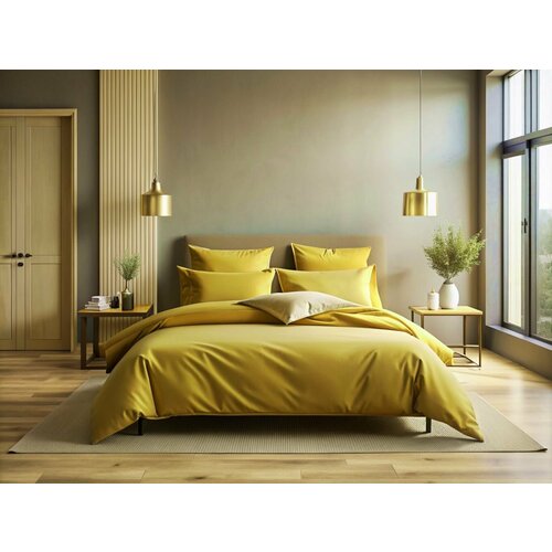Простыня из тенселя на резинке 160х200х20 - М - 60S 12 Горчица