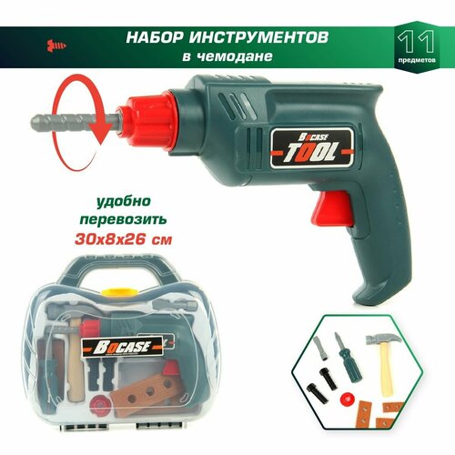Игровой набор инструментов для мальчиков 11 предметов, Veld Co / Чемодан ящик с инструментами для детей / Шуроповерт, молоток, отвертка