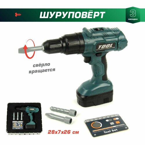 Детская дрель на батарейках, 3 насадки, Veld Co / Набор инструментов со звуком для мальчиков
