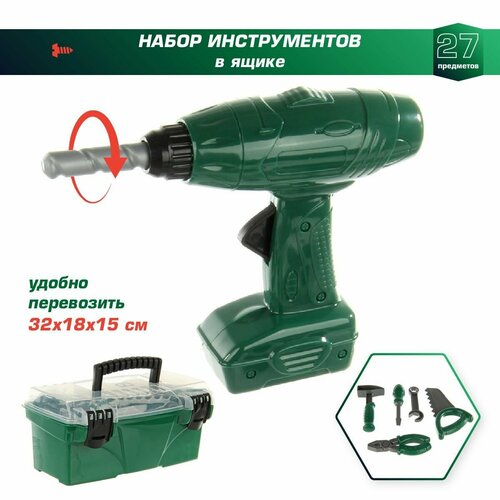 Детский игровой набор инструментов для мальчиков, 27 предметов, Veld Co / Шуроповерт на батарейках с насадками для детей