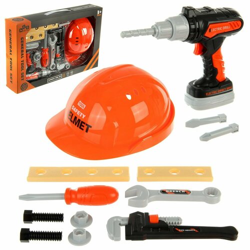 Детский подарочный набор строителя познакомит малыша с инструментами и их назначением. Детский набор игрушечных инструментов оформлен в реалистичном дизайне, обладает яркой и красивой расцветкой, которая понравится каждому ребенку, большое количество элементов. Изготовлен из прочного и долговечного материала, прослужит много лет, хороший пластик без запаха, цвета не тускнеют со временем. Красивая подарочная упаковка, надежные крепления. В комплект игрового набора для сюжетной и ролевой игры входят детали для сборки верстака, набор наклеек, каска, ручная пила, пассатижи, плоскогубцы, молоток, клещи, 2 отвертки, детский игрушечный шуруповерт с насадкой, 2 элемента для скрутки, 2 ключа, 4 гайки, 4 винта, 4 строительных элемента. На полочки можно положить инструменты. Дверка открывается, на подставку можно положить инструменты. На крючки можно повесить инструменты. Кран никаких функций не несет. В раковине есть отверстие, пробки не предусмотрено. В элементы для скрутки можно вкрутить винты и закрепить их гайками.