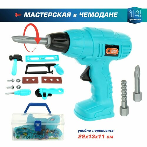 Игровой набор инструментов для мальчиков 14 предметов, Veld Co / Чемодан ящик с инструментами для детей / Шуроповерт, молоток, отвертка