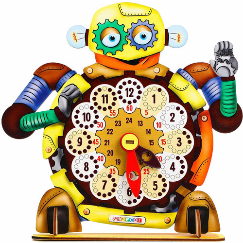 Обучающая игра Smile Decor Часы "Робот", 24 часовой циферблат с секундами, знакомство с часами, формирование представления о времени