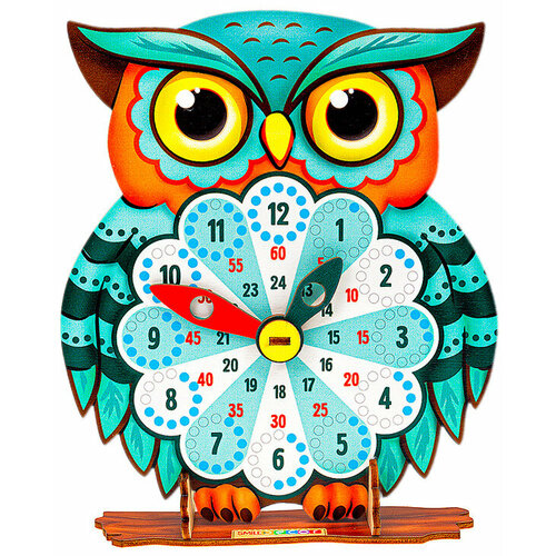Детские деревянные часы Smile Decor "Совушка" на подставке, для изучения времени