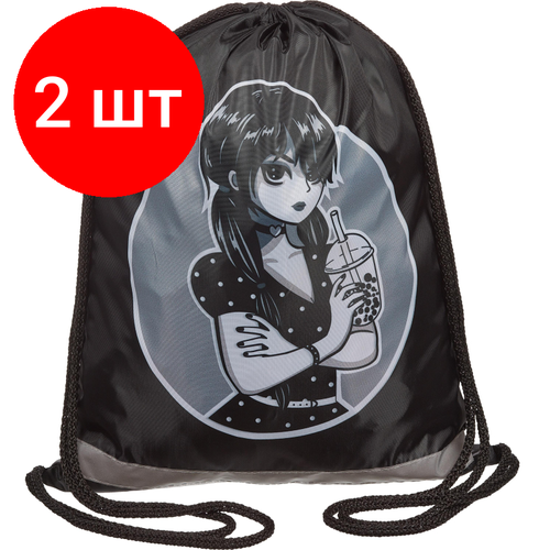 Комплект 2 штук, Мешок для обуви Аниме Готик без ручек, светоотр,36х47