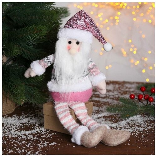 Мягкая игрушка Дед Мороз в розой шапочке-длинные ножки 11х37см
