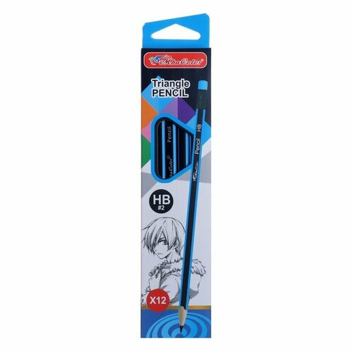 Карандаш чернографитный твёрдость НВ, с ластиком, треугольный, заточенный, корпус микс(12 шт.)