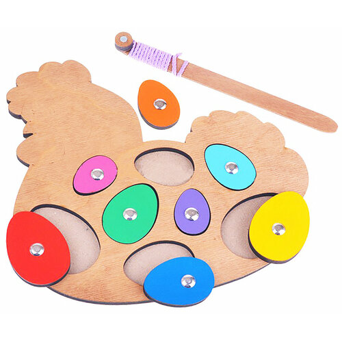 Развивающая магнитная рыбалка Smile Decor "Курочка-Несушка", деревянная рамка-вкладыш