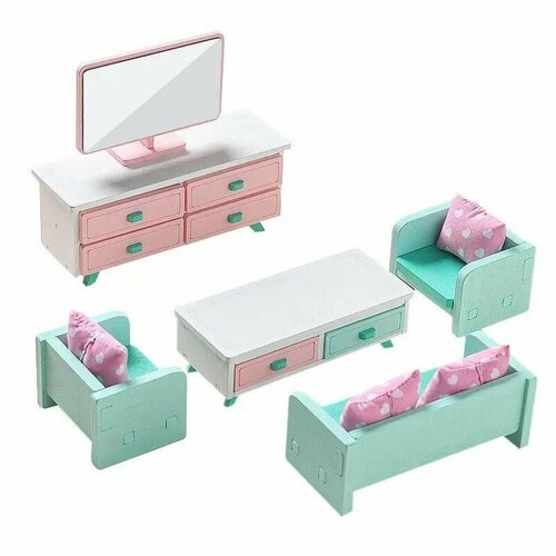 Цены на Набор мебели для кукольного домика ( с круглым столиком) бежевый в г. Волгоград