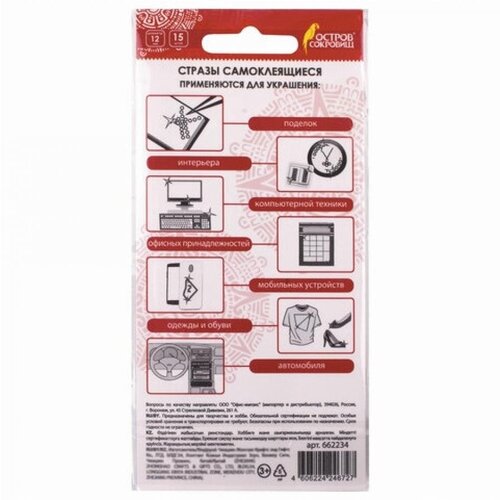 Остров сокровищ Стразы самоклеящиеся "сердца", 12 мм, 15 штук, малиновые, на подложке, остров сокровищ, 662234