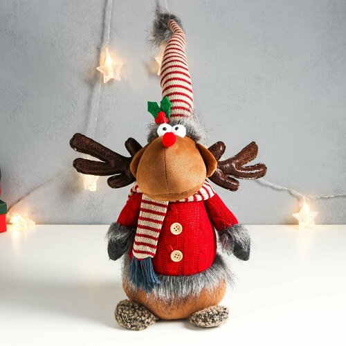 Кукла интерьерная "Лосяш в полосатом колпаке и шарфике с ягодками" 60х31х20 см