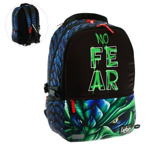 Рюкзак молодёжный deVENTE Red Label No Fear, 39 х 30 х 17 см, эргономичная спинка + usb и аудио выход, синий, чёрный, зелёный