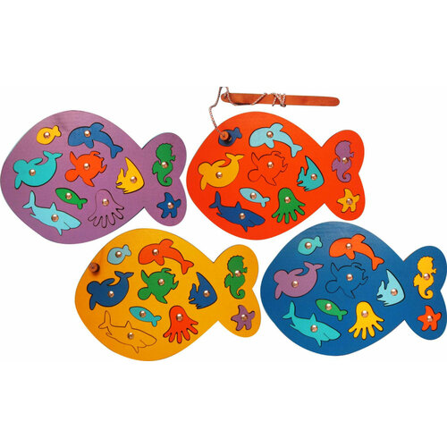 Развивающая настольная магнитная игра из дерева Smile Decor "Рыбалка", рамка-вкладыш