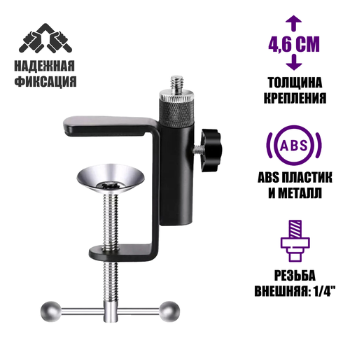 Цены на Усиленная струбцина крепление для камеры видеоняни, резьба 1/4, нагрузка 1.2 кг черный в г. Волгоград