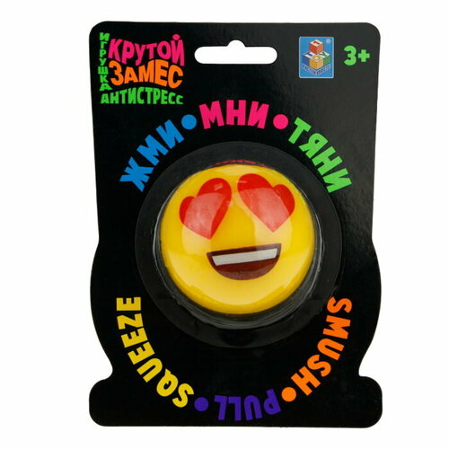 Игрушка антистресс 1TOY Крутой замес шар жёлтый смайлик 6см