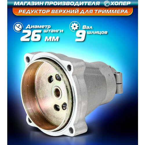 Редуктор верхний для триммера в сборе 9 шлицов 26 мм ( модели триммеров 33/43/52)