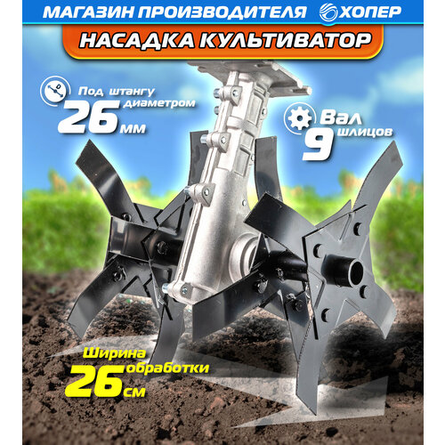 Насадка на триммер бензиновый / насадка культиватор 004 (вал 26 мм,9шлицов) насадка для бензотриммера