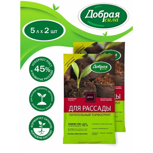 Комплект Добрая сила Грунт для рассады, пакет 5 литров х 2 шт.