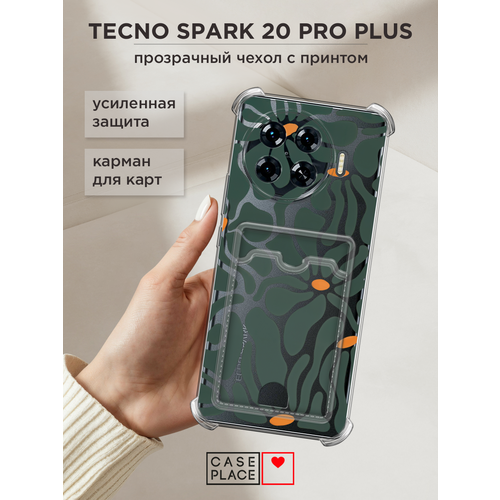Чехол на Tecno Spark 20 Pro Plus (Текно Спарк 20 Про Плюс) с картой и принтом Волнистые цветы