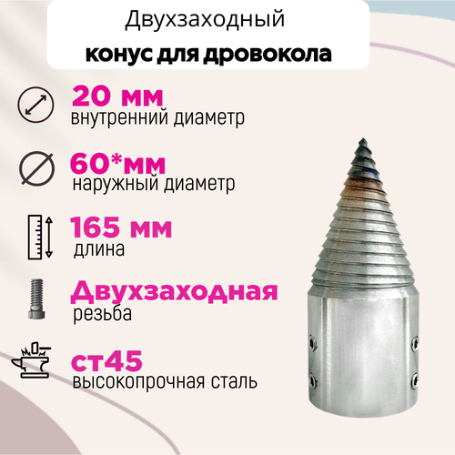 Конус винтового дровокола D 60 мм L 165 внутренний D 20 мм