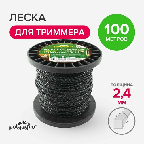 Леска для триммера "квадрат витая" 2,4 мм*100 м Polyagro