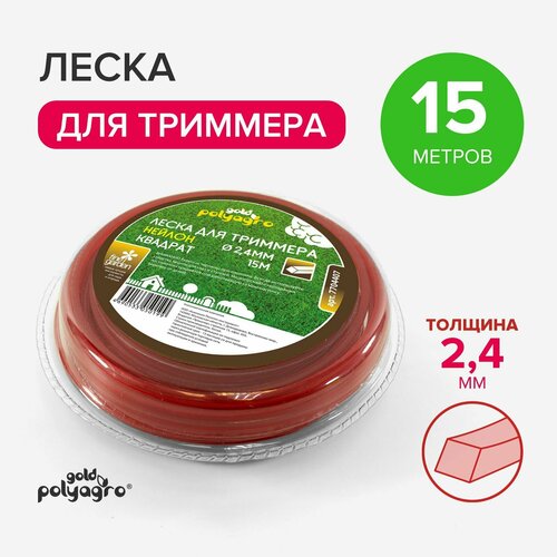 Леска для триммера 2,4 мм квадрат, нейлон 15м Polyagro