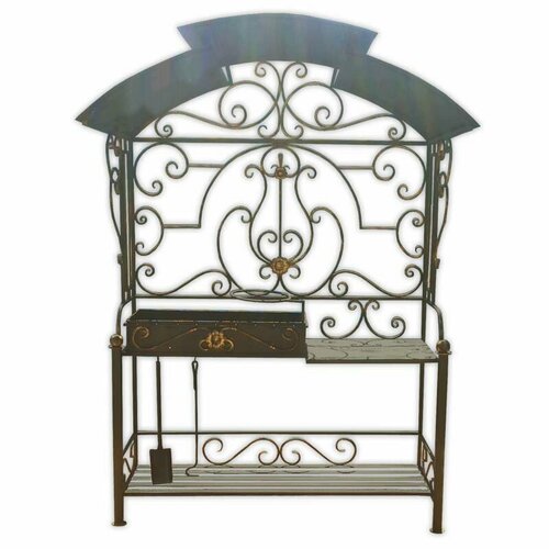 Мангал DECOR "Барокко", с крышей, для дачи, высота 205см, ширина 95см