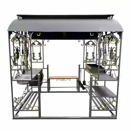 Мангал Е4, сварной, 170х125х230см, с крышкой барбекю и полками