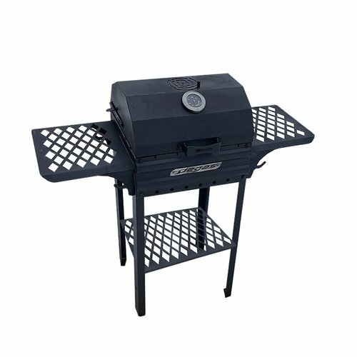 черныйМангал Пегас Дача предназначен для готовки мяса, рыбы или овощей на углях на открытом воздухе с использованием шампуров, решетки и других приспособлений. Изготовлен из конструкционной стали, покрытый жаропрочной эмалью, мангал имеет сборно-разборную конструкцию. Особенностью мангала является внешний дизайнерский вид, съемные столики, термометр. Боковые отверстия обеспечивают оптимальный приток воздуха для поддержания горения и жара углей. Нижняя полка позволяет удобно и компактно хранить все необходимые материалы и подручные средства.