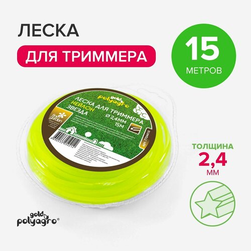 Леска для триммера 2,4 мм звезда, нейлон 15м в блистере Polyagro