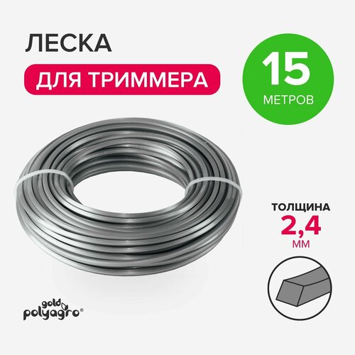 Леска для триммера Gold 2.4 мм, 15 м, стальной трос POLYAGRO 7704924