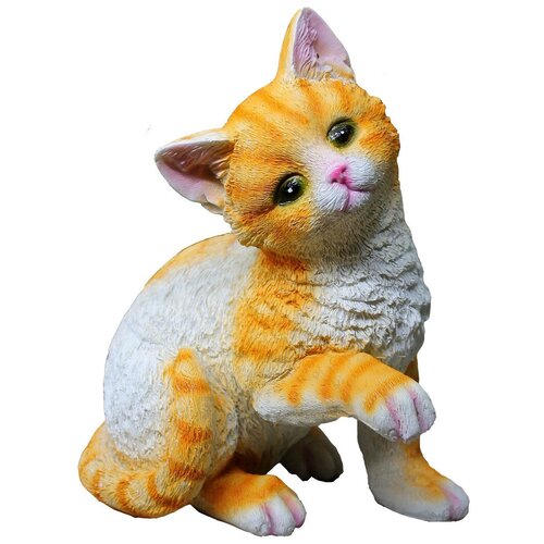 Садовая фигура ТулаСад Котенок игривый белый/оранжевый ,26 см