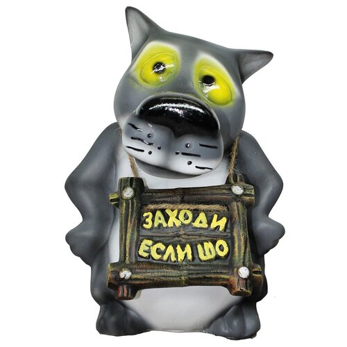 Садовая фигура ТулаСад Волк с табличкой серый/желтый ,58 см