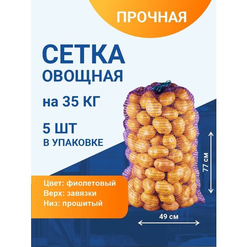 Сетка овощная для хранения и транспортировки на 35 кг, 49х77 см, фиолетовая, 5 шт