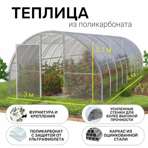 Теплица Арочная (Поликарбонат в комплекте) 3 х 4 метра, оцинкованный каркас 20х20 мм