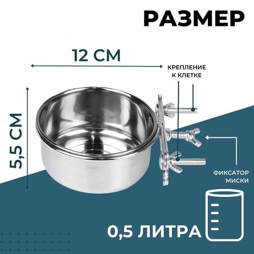 Миска ZooWell Silver 12 см (для крепления на клетку) ZOOWELL