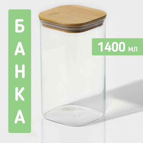 Банка стеклянная для сыпучих продуктов с бамбуковой крышкой,1000 мл