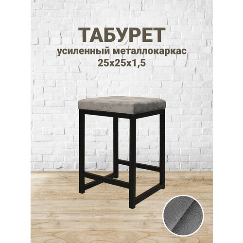 Табурет мягкий Pavlov factory (серый Велюр) металл 25х25(усиленный) в стиле лофт, Табурет, табурет складной