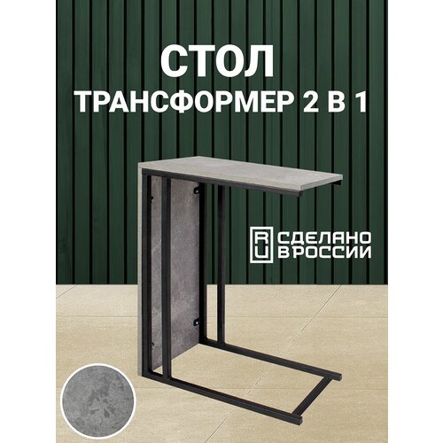 Приставной столик трансформер 2в1, Журнальный стол Pavlov factory (серый Рустика) 50х30х71 см