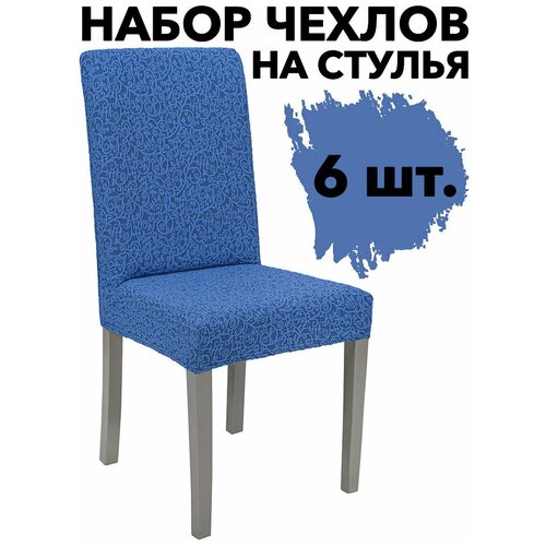 Набор чехлов на стулья со спинкой универсальные на кухню 6 шт Venera, цвет Голубой
