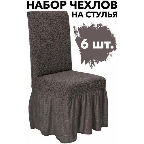 Набор чехлов на стулья со спинкой 6 шт универсальные на резинке Venera, цвет Кофе с молоком