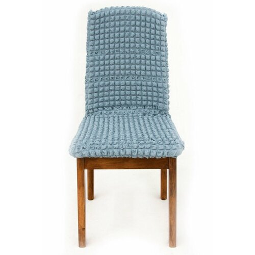 Чехол на стул со спинкой на кухню с рисунком без оборки набор 4 шт Жаккард Venera, цвет Голубой