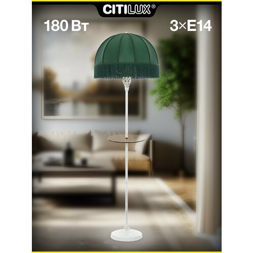 Citilux Базель CL407922T Торшер патина со столиком и зелёным абажуром