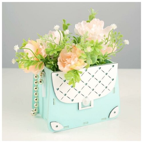 Кашпо деревянное 15,5х10х12 см "Сумочка", тиффани пастель-белый
