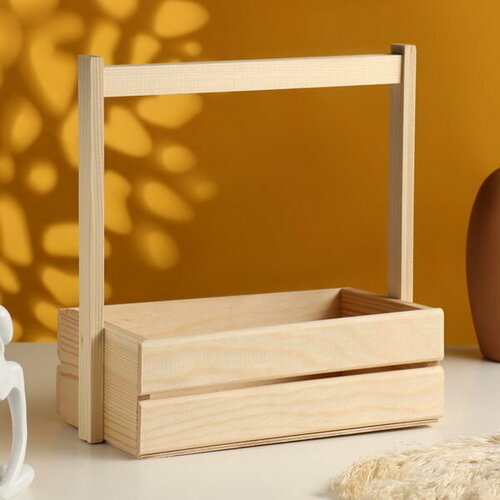 Кашпо деревянное двуреечное с ручкой 27х14х24.5см натуральные