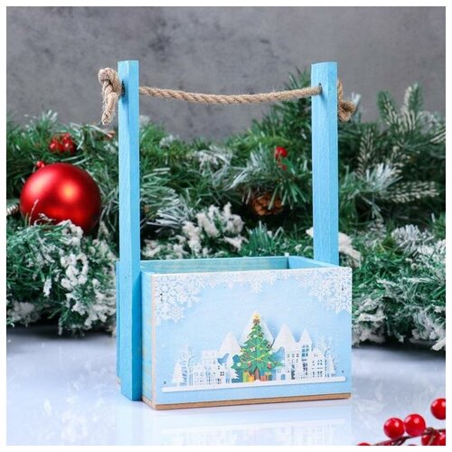 Кашпо деревянное "Конверт, Новогодний №4", деревянная ручка, красное, 20,5×18×6 см