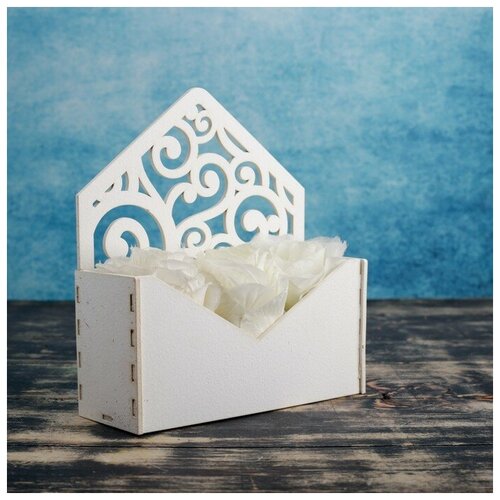 Кашпо деревянное 18×6×20 см Конверт Радель "Дуновение", белый Дарим Красиво (1шт.)